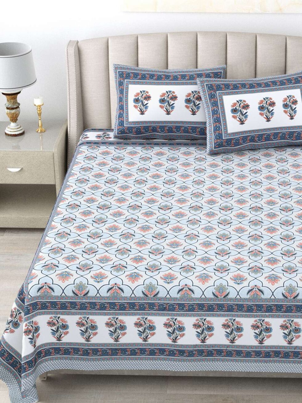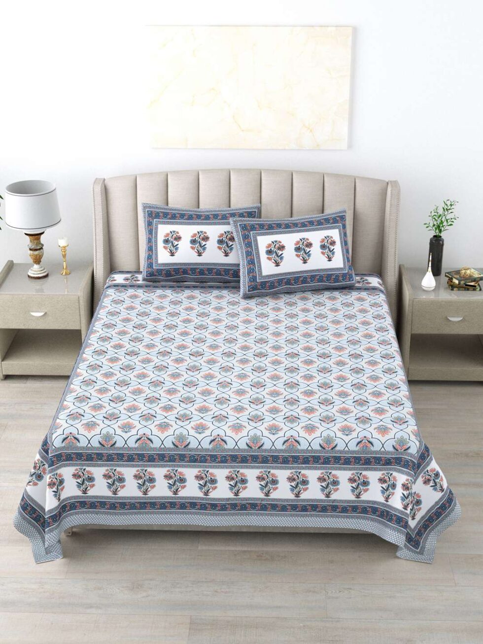 100% Pure Cotton Traditional Printed Bedsheet for Double Bed King Size Bedsheet with 2 Pillow Covers